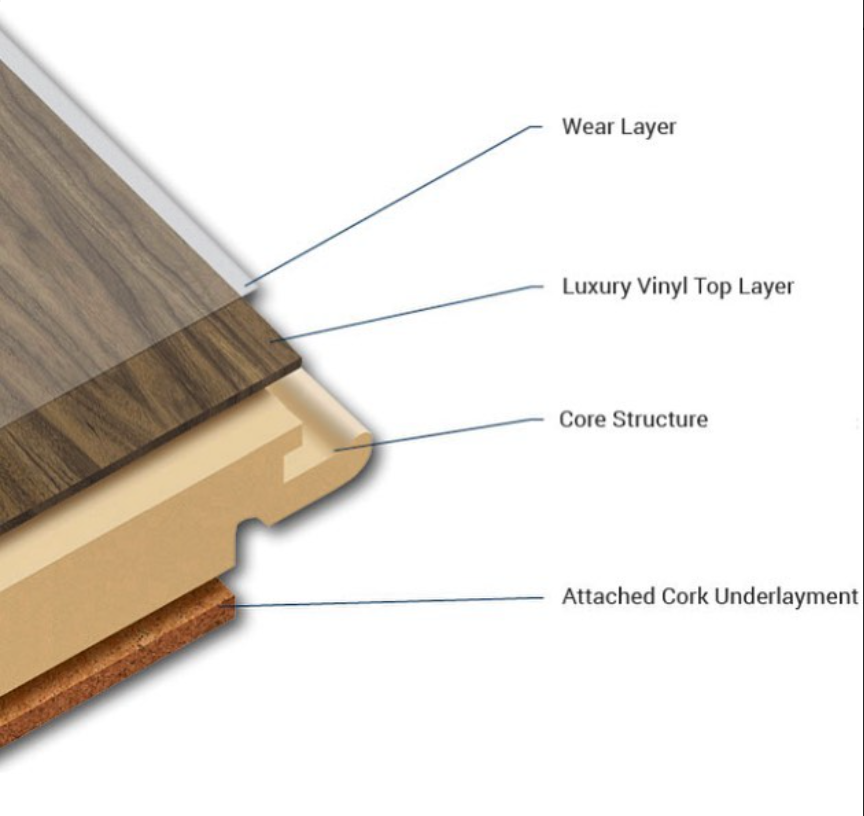 Attached Underlayment, Core Structure, Luxury Vinyl Image, Wear Layer